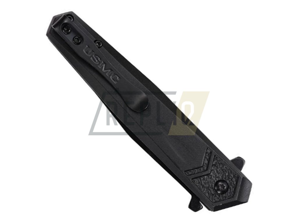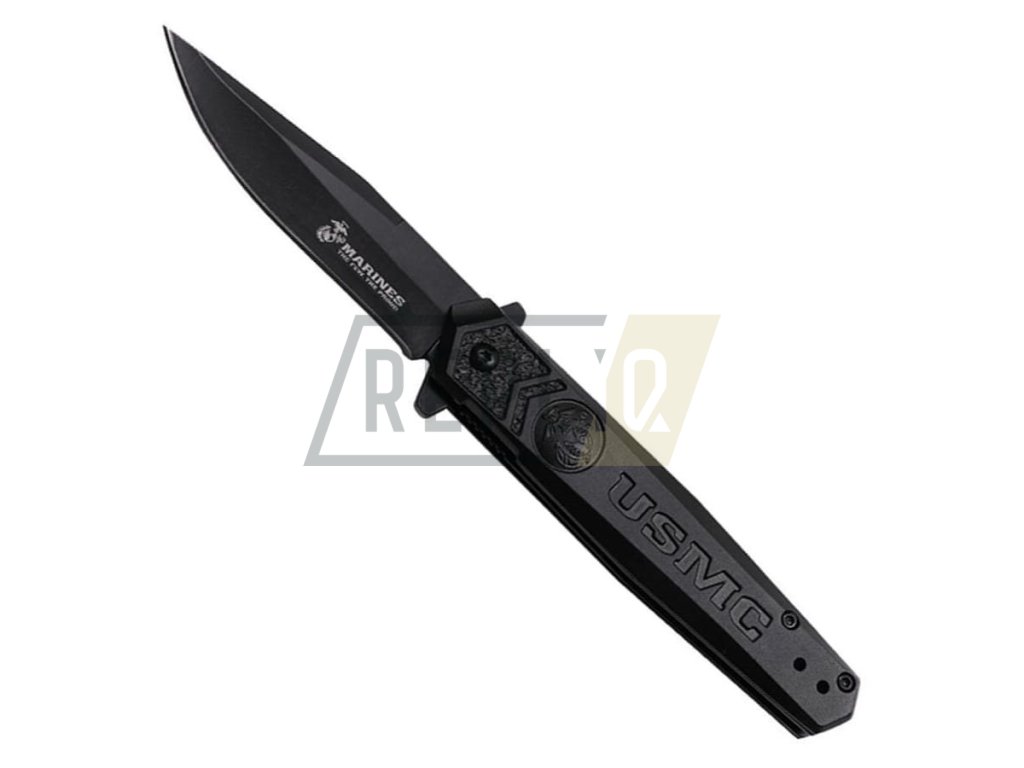 Černěný zavírák s asistovaným otevíráním opatřený logem USMC a nápisem MARINES na čepeli. Čepel s hladkým ostřím je vyrobená z nerezové oceli 3Cr13Mov a v otevřeném stavu je jištěna pomocí oblíbené pojistky Linerlock. K rychlému otevření můžete využít i integrovaného flipperu. Na výrobu rukojeti byl použit lehký hliník. Samozřejmostí je kapesní klip pro snadné přenášení v kapse.