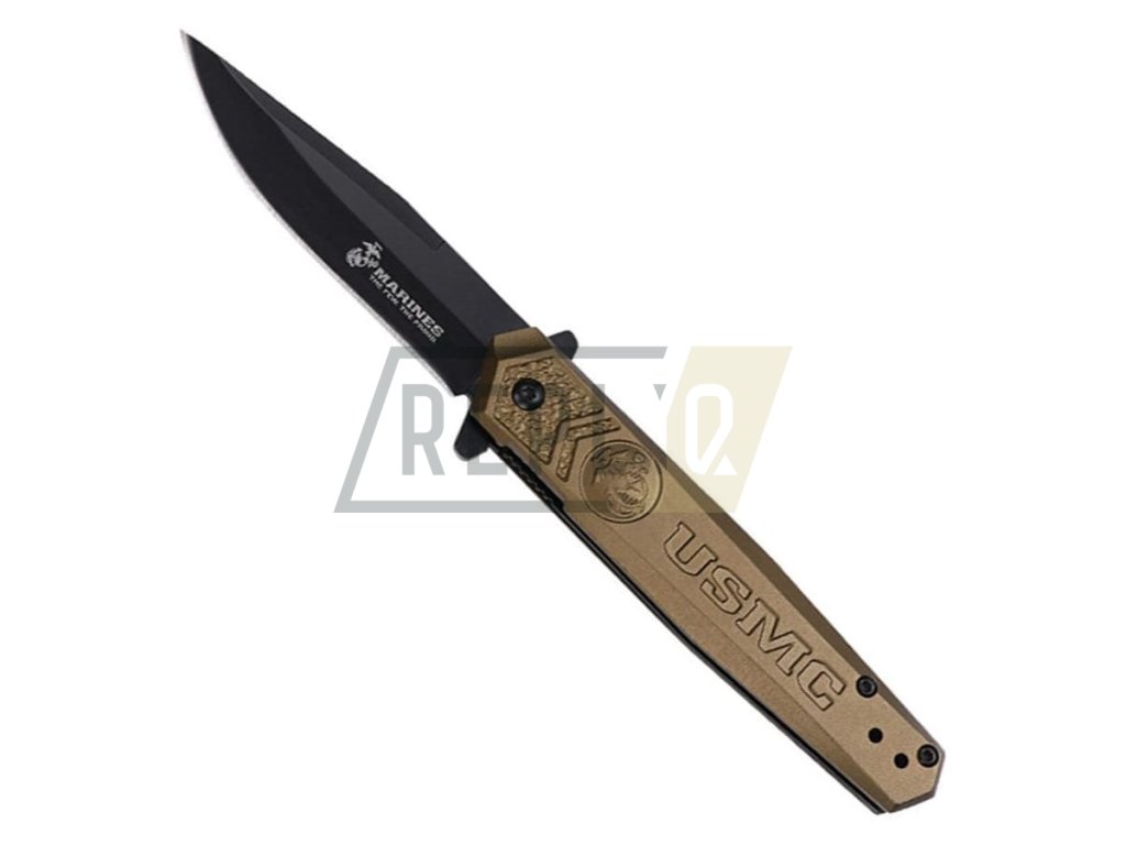 Černěný zavírák s asistovaným otevíráním opatřený logem USMC a nápisem MARINES na čepeli. Čepel s hladkým ostřím je vyrobená z nerezové oceli 3Cr13Mov a v otevřeném stavu je jištěna pomocí oblíbené pojistky Linerlock. K rychlému otevření můžete využít i integrovaného flipperu. Na výrobu rukojeti byl použit lehký hliník. Samozřejmostí je kapesní klip pro snadné přenášení v kapse.