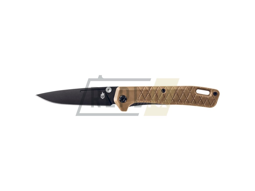 Zavírací nůž, který je díky své nízké hmotnost a kompaktní a štíhlé konstrukci perfektní na každodenní (EDC) nošení. Čepel nože ve tvaru drop point je opatřena výrazným černěním, hladkým ostřím a na její výrobu byla použita nerezová ocel 7Cr17. Pro snadné otevírání je čepel vybavena dlouhým nehetníkem a hlavně oboustranným kolíčkem. V otevřeném stavu je čepel jištěna pomocí prověřené pojistky typu Linerlock. Spíše drobnější záštita ochrání vaše prsty před poraněním při práci. Stylově vypadající rukojeť je vyrobená z materiálu Zytel®, což je termoplastický polyamid (nylon) se skvělým poměrem mezi nízkou hmotností a vysokou otěruvzdorností. Díky výrazné textuře se nůž skvěle drží v ruce a nehrozí jeho vyklouznutí ani v náročných podmínkách. Samozřejmostí je otvor na provlečení pojistné šňůry a kovový kapesní klip opatřený logem GERBER.