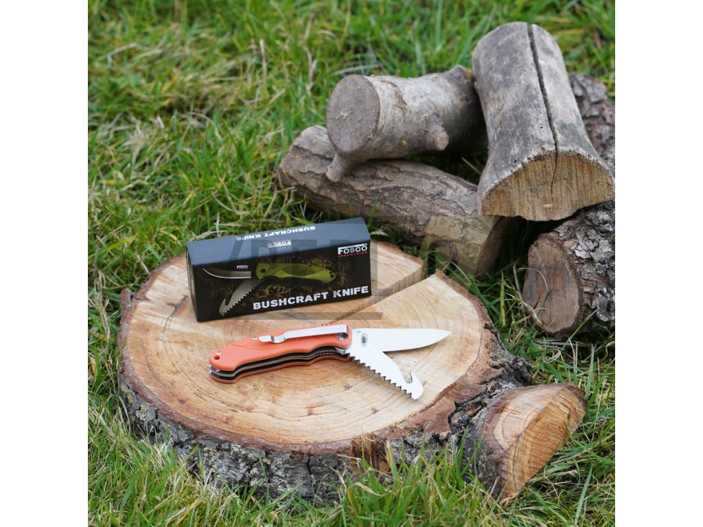 Nůž zavírací BUSHCRAFT multifunkční ORANŽOVÝ