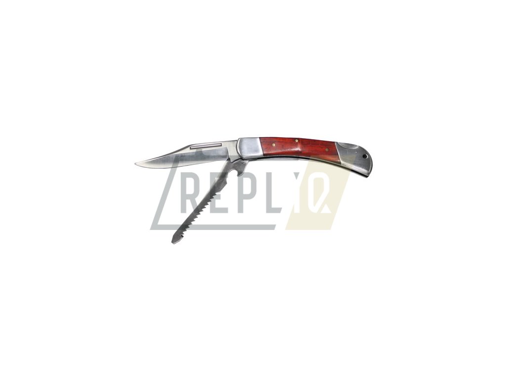 Lovecký nůž s pilkou a otvírákem na láhve.