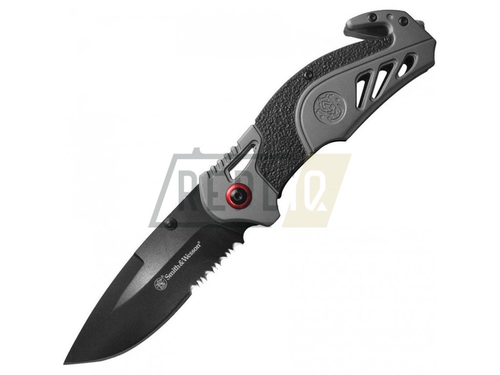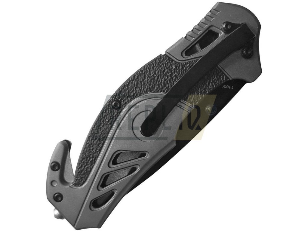Stylově vypadající zavírák s integrovaným řezákem pásů. Čepel nože ve tvaru drop point disponuje kombinovaným ostřím a oboustranným kolíčkem pro snadné otevírání jednou rukou. Na její výrobu byla použita nerezová ocel 8Cr13MoV s výrazným černěním a v otevřeném stavu je jištěna spolehlivou pojistkou LinerLock. Rukojeť je z hliníku a je opatřena gumovými prvky zlepšujícími úchop. Najdete na ní také již zmíněný řezák pásů, wolframový bodec na prorážení skla a kovový kapesní klip.