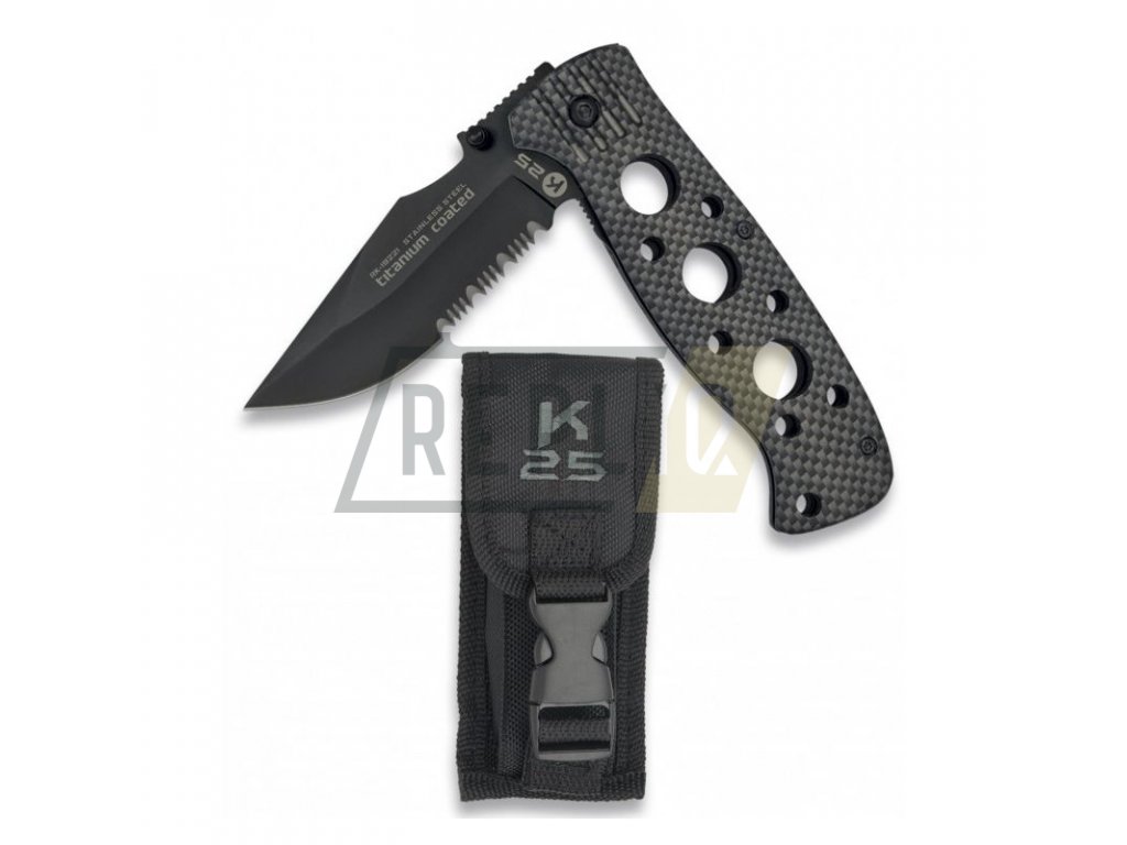 K25 je značka spadající pod španělskou firmu Martinez Albainox, kterou v roce 1990 založil podnikatel José Martínez za účelem produkce a prodeje kvalitních a specifických nožířských produktů. V sortimentu K25 naleznete opravdu široký výběr nožů, ať už zavíracích, tak i těch s pevnou čepelí. Společným jmenovatelem nožů značky K25 je využití kvalitní nerezové oceli (často s titanovým povlakem), odolných rukojetí a nadčasového designu.