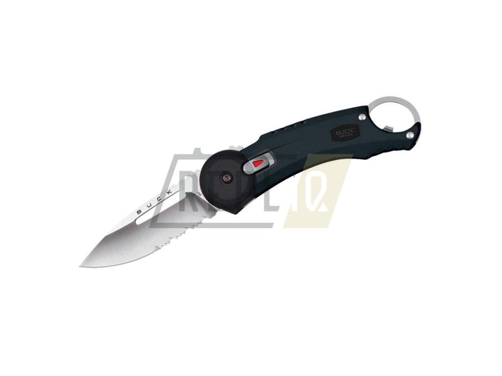 Zavírací nůž s částečně zoubkovaným ostřím v, pro BUCK, netradičním designu. V rukojeti je umístěná pojistka SafeSpin™, která pomůže s bezpečným otevíráním nože - nůž otevřete, aniž byste se dotkli čepele. Stačí posunout pojistku směrem dolů a díky vystupujícímu ozubení v kořeni čepele nůž jednou rukou otevřete. Opačným postupem nůž můžete zavřít. Gumová rukojeť poskytuje řadu výhod - je příjemná na úchop, v teple ještě více nehřeje, v zimě nestudí a lépe se tak s celým nožem zachází. Na konci rukojeti je kovové očko, které jednak slouží jako otvírák na láhve a dále jím můžete provléknout šňůrku nebo provázek. Jak je pro nože BUCK charakteristické, je i tenhle zavírák vybavený odnímatelným kapesním klipem.