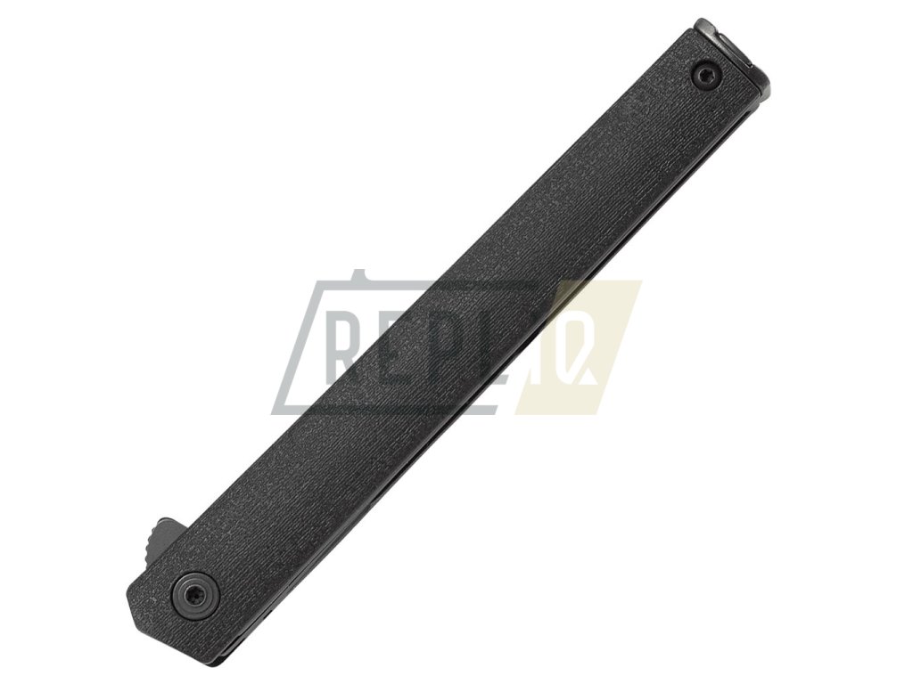 Praktický EDC nůž, který je díky svému nízkému profilu a minimální hmotnosti nenápadný a lze bez problémů uložit i do hrudní kapsy u košile. Čepel s hladkým ostřím je vyrobená z prémiové nerezové oceli AUS 8 s vysokým podílem uhlíku a EDP černěním, které noži dodává specifický "blackout" vzhled a umožňuje snadné ostření. O snadné a především hladké otevírání čepele se stará IKBS™ kuličkové ložisko doplněné o jednoduchý flipper. Čepel je v otevřeném stavu jištěna pomocí prověřené pojistky LinerLock. Rukojeť černé barvy je vyrobena z nylonu zesíleného pomocí skelného vlákna. Tento materiál se vyznačuje velmi nízkou hmotností a neobyčejnou odolností. Díky kovovému poutku lze nůž snadno zavěsit na opasek, okraj kapsy apod.
