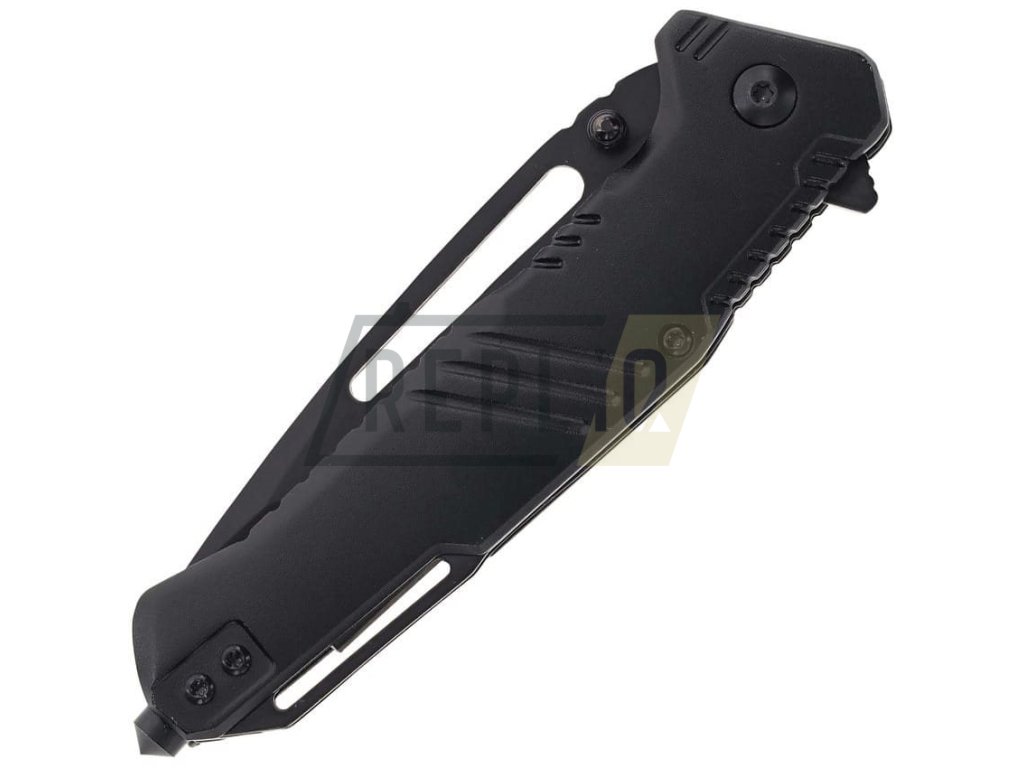 Celočerný zavírák taktického vzhledu. Čepel tanto tvaru se vyznačuje extrémně ostrou špičkou a na její výrobu byla použita odolná nerezová ocel s černým povlakem. V otevřeném stavu je nůž jištěný pomocí léty prověřené pojistky typu LinerLock. K pohodlnému otevírání můžete využít masivního nehetníku, oboustranného kolíčku nebo flipperu. Hliníková rukojeť je mírně zakřivená, na jejím konci naleznete otvor pro pojistnou šňůru a nouzový rozbíječ skla. Samozřejmostí je kovový kapesní klip.