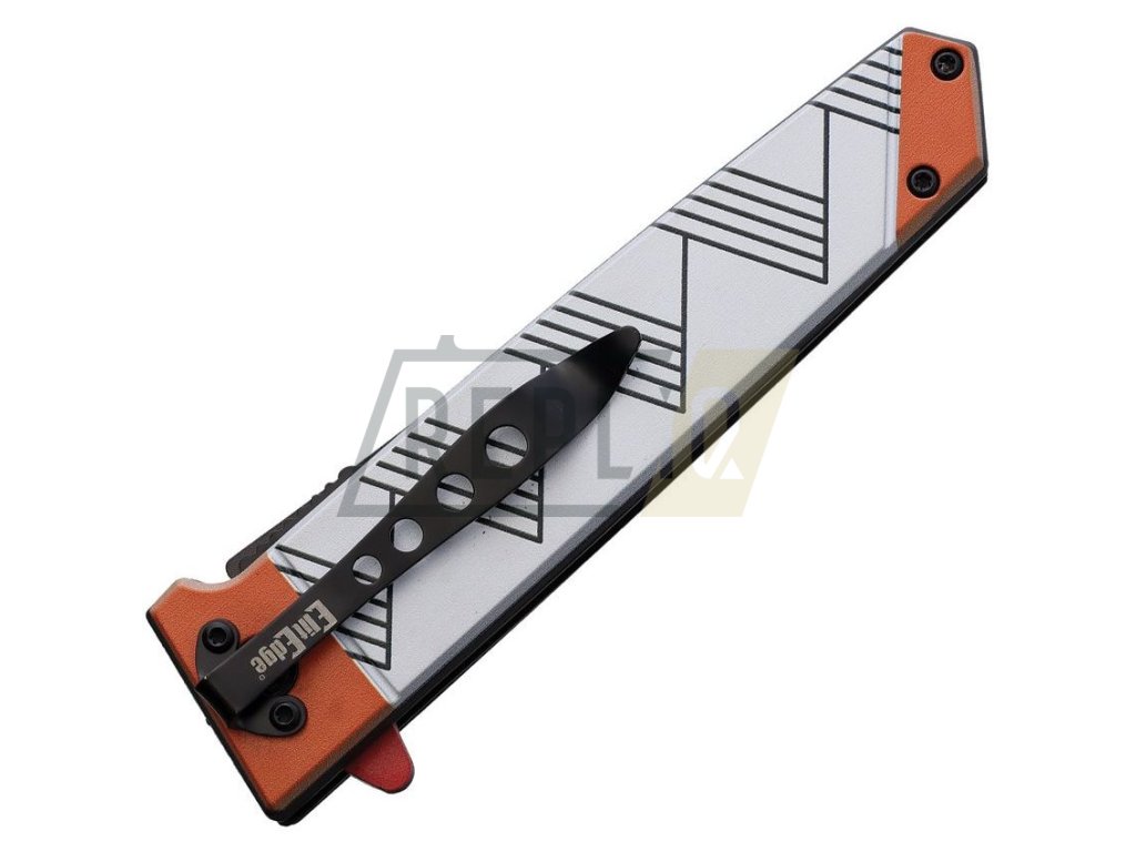 Zavírací nůž s asistovaným otevíráním. Čepel tvaru tanto s hladkým ostřím je vyrobena z nerezové oceli 420C. V otevřeném stavu je nůž zajištěn pojistkou LinerLock. K otevření nože slouží flipper, který následně funguje jako záštita. Střenky jsou hladké, vyrobené z nylonu. Rukojeť i čepel mají výrazný barevný potisk. Kovový klip pro uchycení za lem kapsy.