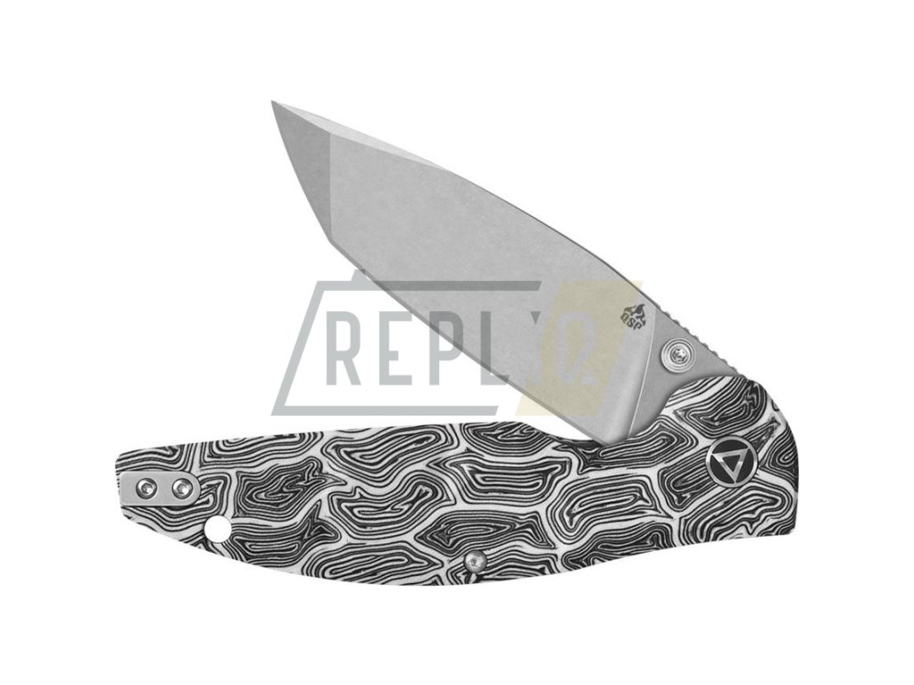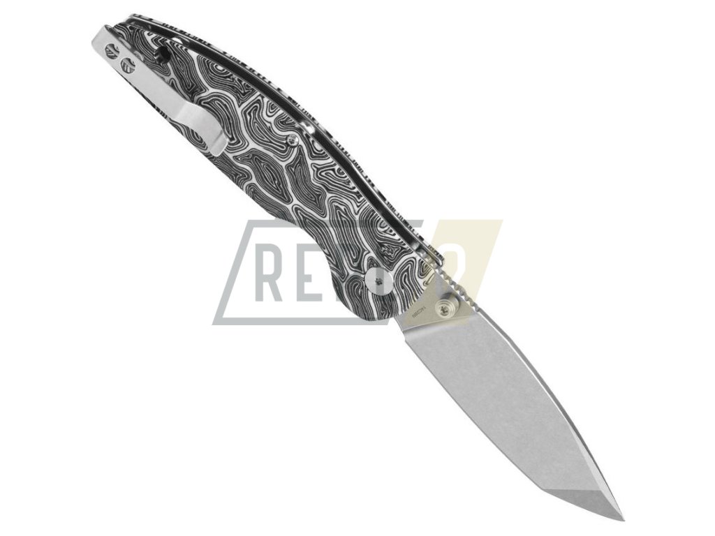 Čepel tanto tvaru s hladkým ostřím je vyrobená z kvalitní oceli Sandvik 14C28N a její povrch je pokryt jemným keramickým povlakem zlepšujícím mechanickou odolnost. O hladký chod čepele se stará keramické kuličkové ložisko a v otevřeném stavu je nůž jištěn pomocí spolehlivé pojistky typu LinerLock. Rukojeť je vyvedená v černé a zelené barvě, přičemž vzor svým vzhledem připomíná želví krunýř. Na výrobu střenek byl použit materiál G10, což je sklolaminát vyráběný ze skelných vláken zapékaných v epoxidové pryskyřici. G10 se vyznačuje mimořádnou pevností a disponuje skvělou přilnavostí i extrémně náročných podmínkách, pod vodou apod. V neposlední řadě je G10 perfektním elektrickým izolantem a výborným tepelným izolantem v horku i chladu. Samozřejmostí je kovový kapesní klip s možností připevnění na levou i pravou stranu nože.