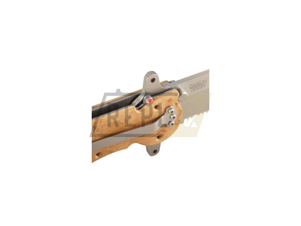 Velký zavírací taktický nůž od americké firmy CRKT, navržený Kitem Carsonem pro ozbrojené složky a speciální jednotky. Čepel nože je vyrobena z kvalitní oceli AUS 8, má tvar tanto a ostří částečně zoubkované. Čepel je vybavena oboustranným kolíčkem na otevírání jednou rukou a také flipperem pro velmi rychlé otevření. Jako jeden z mála zavíracích nožů disponuje oboustrannou záštitou pro maximální bezpečnost při práci. Nůž je opatřen spolehlivou pojistkou linerlock s podpůrnou pijistkou, která znemožňuje nechtěné zavření nože i při hrubém zacházení. Rukojeť je tvořena ocelovými příložkami a střenkami z nylonu se skelnými vlákny v pískové barvě. Nůž je též vybaven klipsem pro zavěšení na kapsu, lem kalhot či opasek, který lze libovolně přemísťovat do čtyř míst na rukojeti.