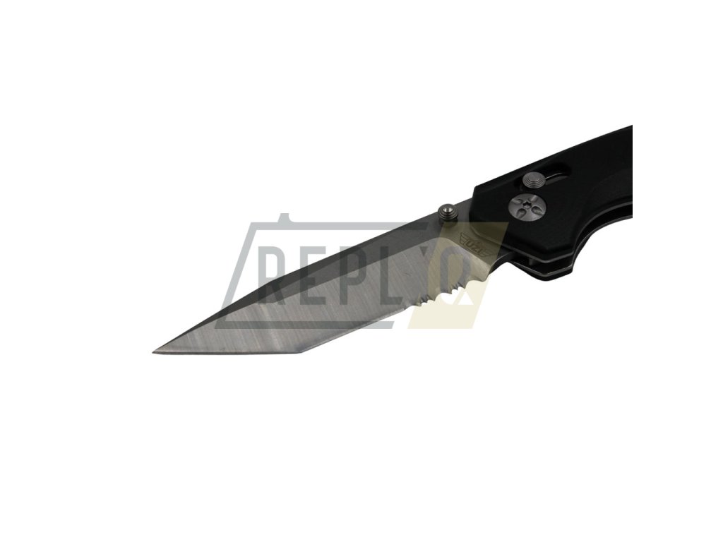 Taktický nůž s kombinovaným ostřím. Čepel ve tvaru tanto je je vyrobená z nerezové oceli 8Cr18 a pro snadné otevírání je opatřena oboustranným kolíčkem. V oteřeném stavu je čepel jištěna pomocí pojistky Axis lock, jejíž ovládací prvek naleznete na přední části rukojeti. Rukojeť samotná je příjemně tvarovaná pro pevný úchop a její střenky jsou vyrobené z materiálu G10. Ten se vyznačuje mimořádnou pevností a disponuje skvělou přilnavostí i extrémně náročných podmínkách, pod vodou apod. V neposlední řadě je G10 perfektním elektrickým izolantem a výborným tepelným izolantem v horku i chladu. Na konci rukojeti naleznete praktický otvor na provlečení pojistné šňůry. Samozřejmostí je kovový kapesní klip.