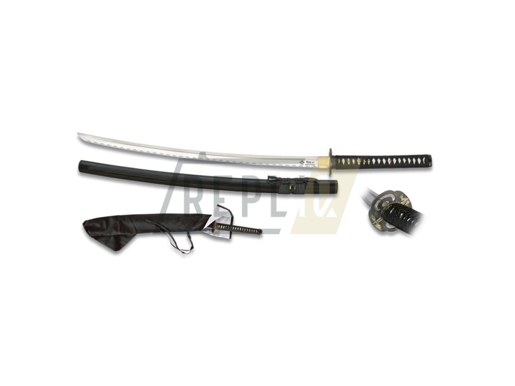 Samurajský meč typu katana se sametově matnou uhlíkovou čepelí.