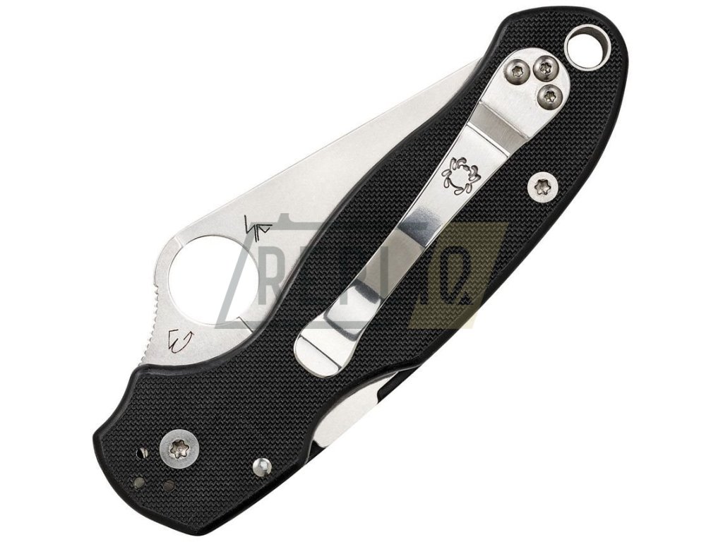 Třípalcová čepel (7,5 cm) je precizně vyrobená z prvotřídní nerezové oceli CPM® S45VN a vyznačuje se plně plochým broušením. Díky tomu nůž získal vynikající rovnováhu mezi odolností, užitkem a řezným výkonem s nízkým třením. Na čepeli nesmí chybět pro nože Spyderco typický otvor (Round HoleTM), který umožňuje pohodlné otevření nože jednou rukou. Tato jednoduchá varianta bude vyhovovat pravákům i levákům.