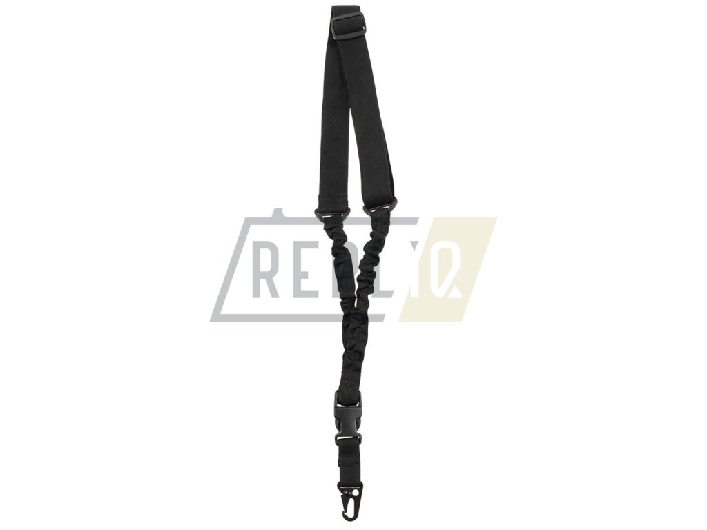 Jednobodový zbraňový popruh s elastickou sekcí a odepínatelnou karabinou. Nastavitelná délka 55-75 cm (nenatažená), materiál: nylon.