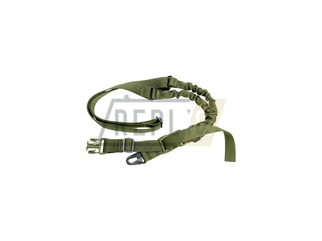 Jednobodový zbraňový nastavitelný popruh s dvojitou elastickou sekcí. Kovová karabinka a fastex spona. Šířka popruhu 31 mm, materiál: nylon.