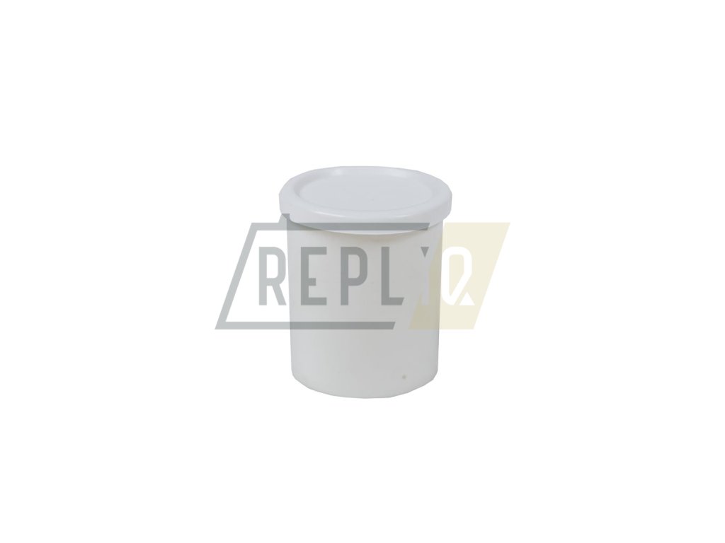 Lékárenský plastový kelímek s víčkem, o objemu 50 ml, vyrobený ze zdravotně nezávadných vstřikovaných plastů, (bylo určeno zejména pro farmaceutický průmysl). Dlouhodobě uložené zboží.