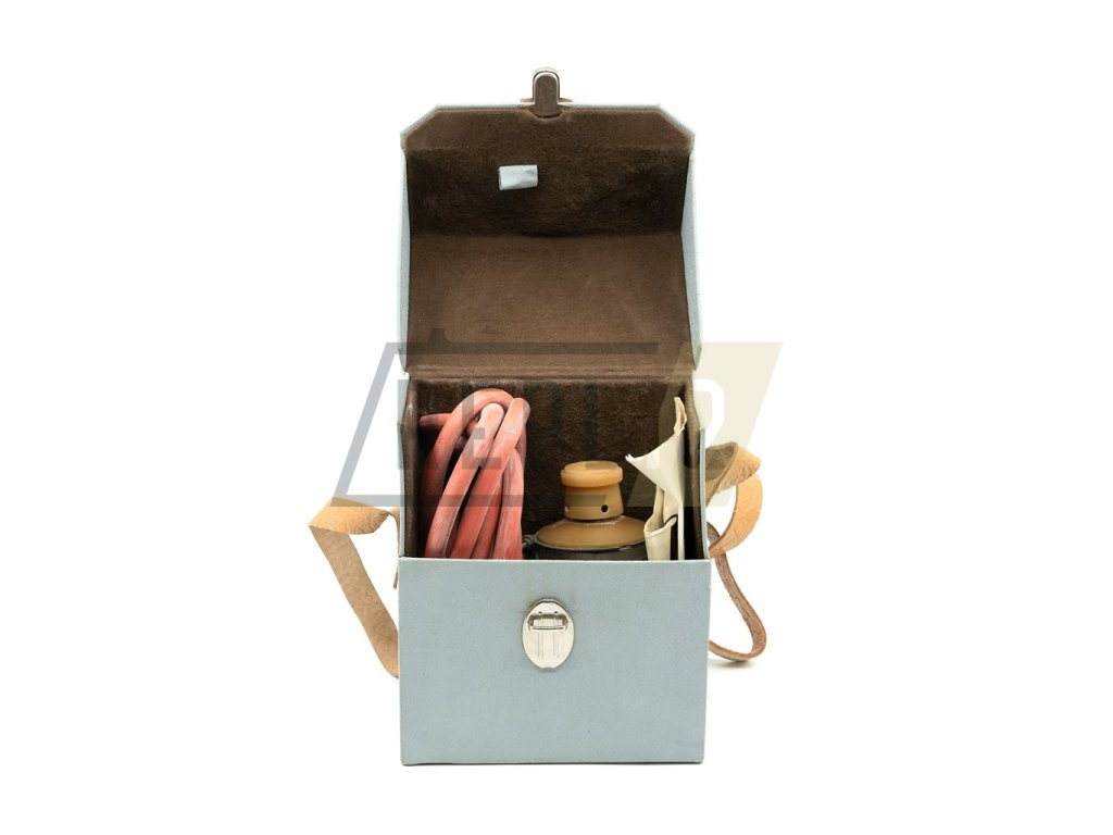 - Popis: Zařízení je v podstatě gumovým měchem s ocelovou spirálou, který je po obou stranách uzavřen víčky z umělé hmoty. Na vrchním víčku je umístěna hlavice, do niž se zasouvají detekční trubice. Spodní víčko je opatřeno ulamovačem hrotů.