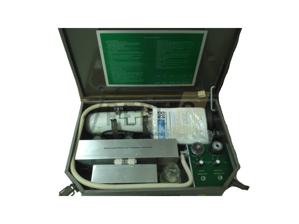 Kompletní přístroj včetně příšlušenství a tlakové láhve. Pro dekorační účely bez záruky funkčnosti.