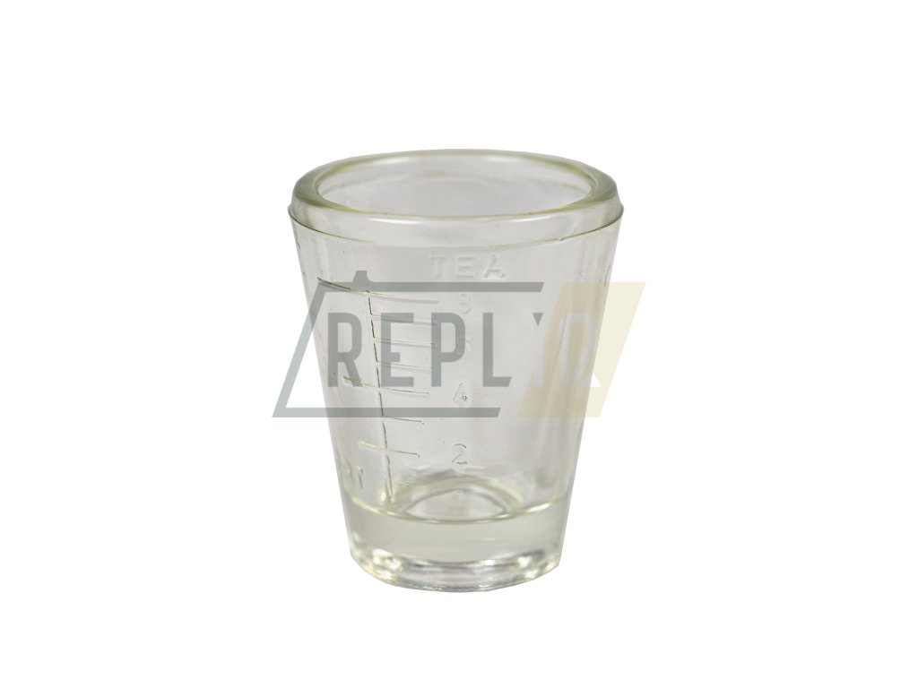 Malá sklenička s vyvedenými měrkami.