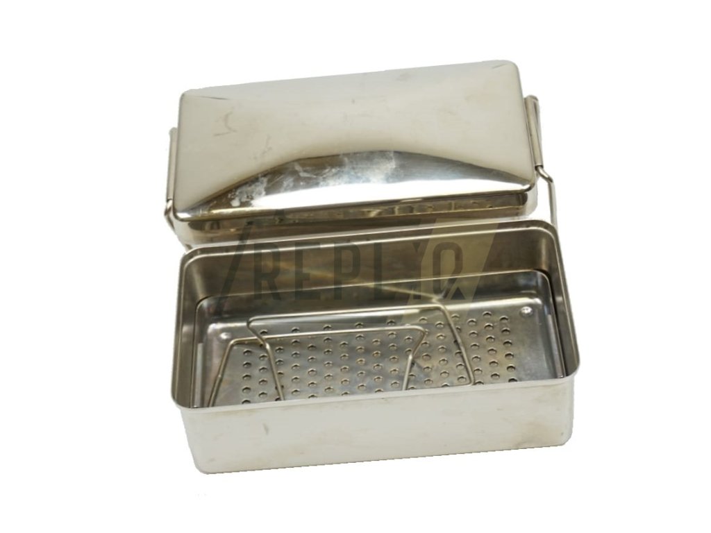 Sterilizátor chirurgických nástrojů malý. Rozměry: 22 x 12 x 6 cm. Materiál nerez. Dlouhodobě skladové zboží které může být i mírně použité.