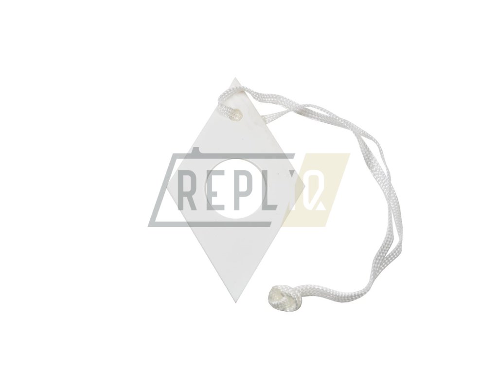Bílá třídící známka ve tvaru kosočtverce s otvorem. Spolu s ostatními známkami najde využití např. při různých skupinových hrách kde je potřeba barevně oddělit jednotlivá družstva. Vhodná též jako popisek přivázaný k produktu ( např. rok výroby na marmelády či kompoty, fantazii se meze nekladou ). Cena za balení/140 ks.