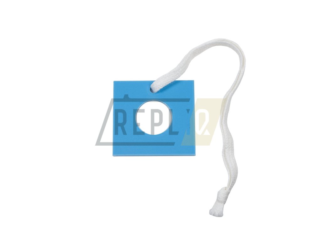 Modrá třídící známka ve tvaru čtverečku s otvorem. Spolu s ostatními známkami najde využití např. při různých skupinových hrách kde je potřeba barevně oddělit jednotlivá družstva. Vhodná též jako popisek přivázaný k produktu ( např. rok výroby na marmelády či kompoty, fantazii se meze nekladou ). Cena za balení/100 ks.