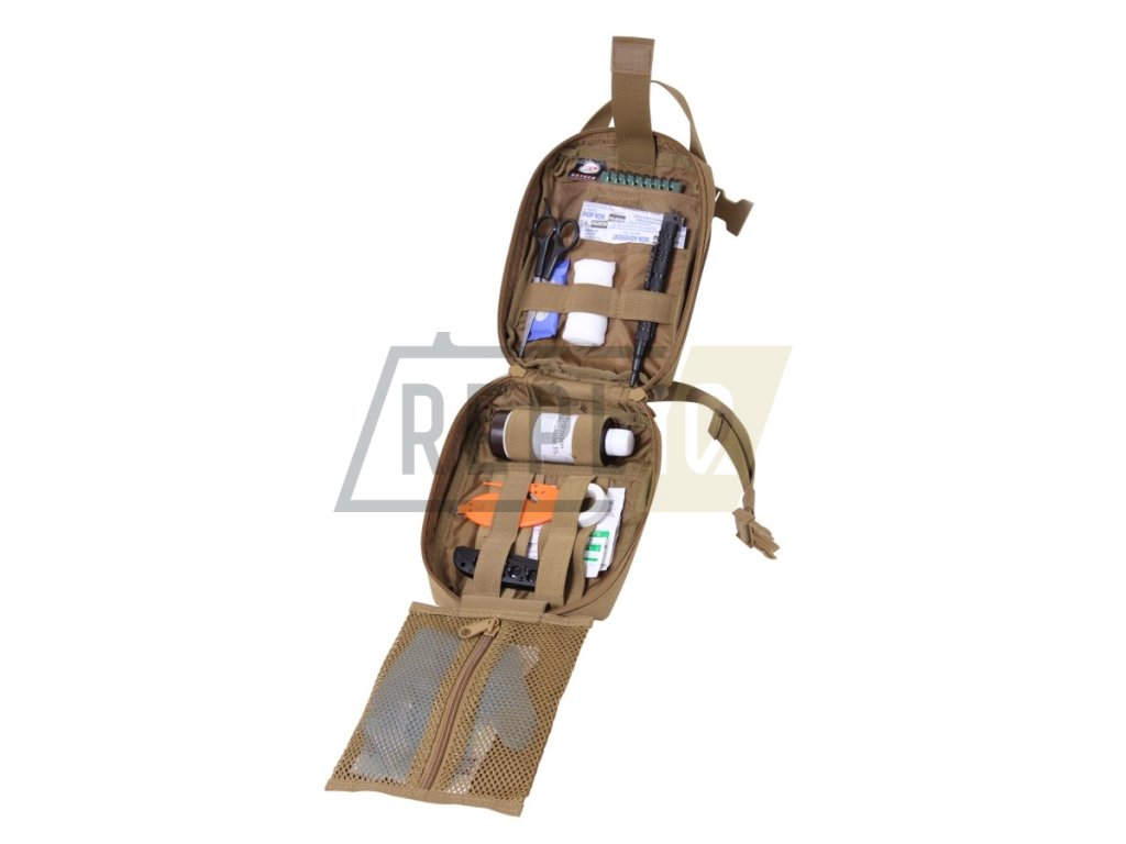 Taktické skládací pouzdro, které je plně kompatibilní s MOLLE systémem, lze tedy připnout na taktickou vestu nebo batoh. Pouzdro je vhodné jako IFAK - lékárnička zvláště z důvodu, že jde díky panelu suchého zipu rychle sundat/odepnout a hodit člověku, který první pomoc momentálně potřebuje (a je schopný se sám ošetřit). Vy, můžete pokračovat v akci, o kolegu jste se postarali.
