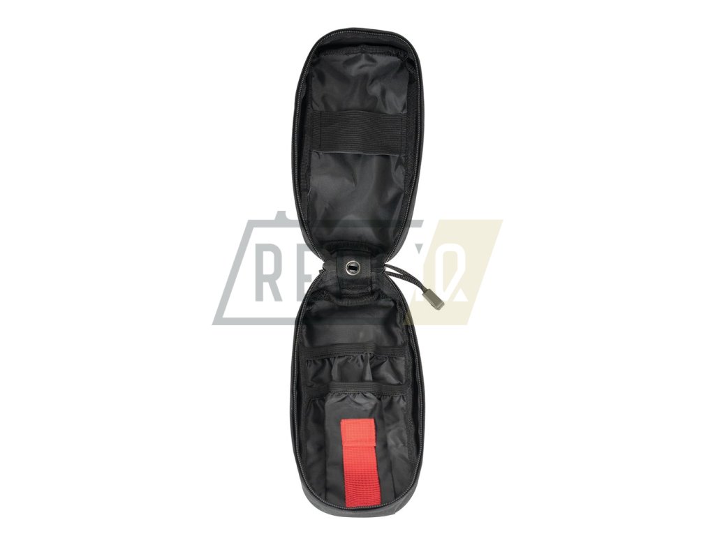 Na čelní straně pouzdra naleznete elastickou přihrádku, která je určena pro vložení škrtidla/turniketu. Přihrádka je krytá chlopní se suchým zipem. Chlopeň je opatřena červeným nápisem TQ a jednoduchým táhlem usnadňujícím otevírání. Vnitřek hlavního úložného prostoru je přístupný skrze dvoucestný zip a pouzdro lze v případě potřeby rychle "roztrhnout" pomocí vnitřního táhla v kontrastní červené barvě. Uvnitř pouzdra naleznete několik pruženek, které jsou vhodné k uložení dalšího zdravotnického vybavení jako jsou nůžky, gázy apod.