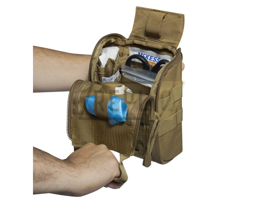 Praktické pouzdro "mušlové" konstrukce určené k přenášení zdravotnického vybavení. Na jeho výrobu byl použitý pevný polyester 600D a díky zadní MOLLE/PALS vazbě lze rychle připevnit k libovolné modulární vazbě na batohu, nosiči plátů apod.