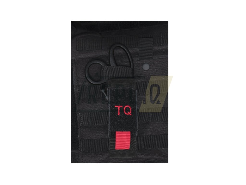 Prostor určený pro turniket je z elastického materiálu, lépe se tak přizpůsobí tvaru různých typů turniketů. Zavírá se pomocí chlopně na suchý zip, na jejíž vrchní straně je výrazný červený nápis TQ a velcro panel pro nášivky se suchým zipem. Chlopeň je vybavená širokým červeným popruhem, aby se pohodlně a rychle otevírala i v rukavicích.