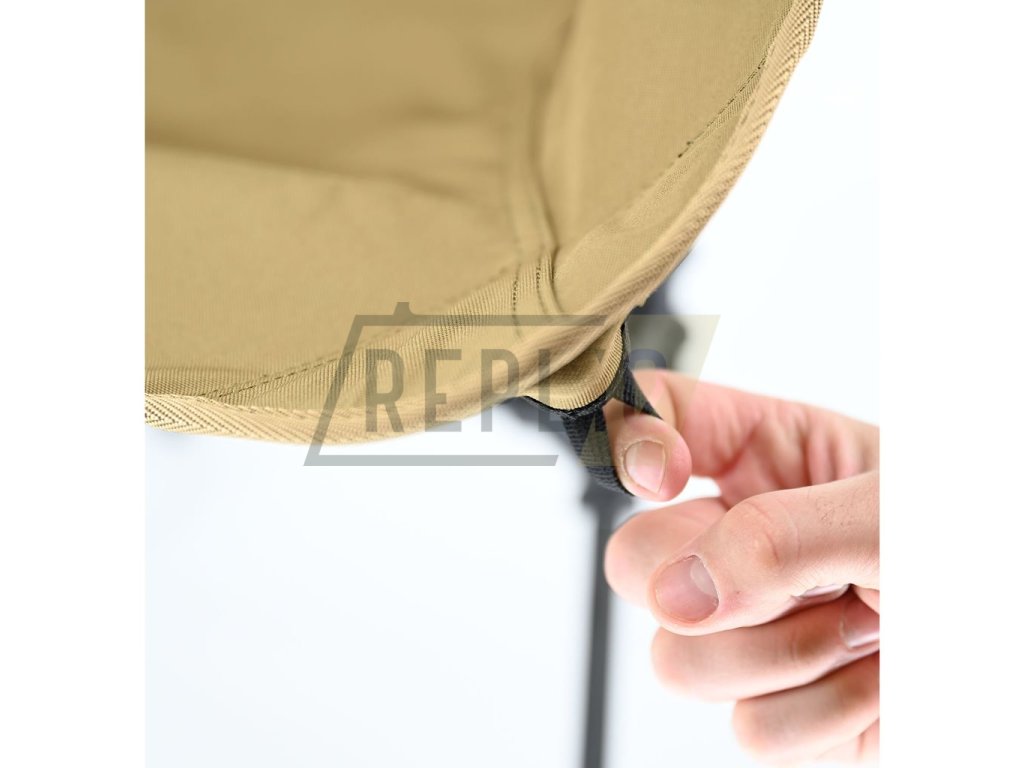 - Spodní konstrukce je navržena tak, aby ji bylo možné sestavit v několika jednoduchých krocích. Tyče jsou spojeny gumovým lanem tak, aby byly vždy správně umístěny. Sedák se pak položí přes rohy a pohodlná kempingová židle je připravena