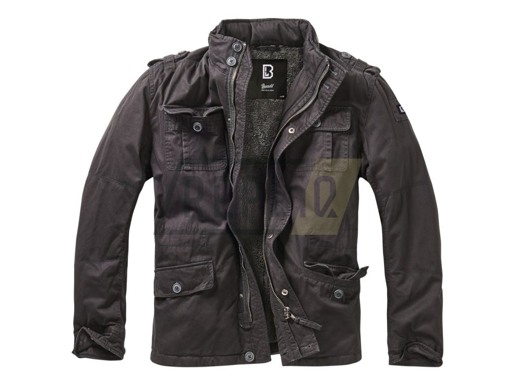 Zapínání bundy je řešeno dlouhým kovovým centrálním zipem, který je navíc krytý légou zapínanou pomocí druků. Bunda má celkem čtyři kapsy: dvě klasické na ruce umístěné v dolní části a dvě hrudní kapsy. Všechny čtyři jsou přístupné skrze chlopeň zapínanou knoflíkem. Límec bundy je stojáčkový, skrývá v sobě prostornou kapuci. Bunda lze v pase stáhnout tkanicí a tím pádem lépe vypasovat na tělo. Na levém rukávu naleznete koženou nášivku s logem BRANDIT a na ramenou ozdobné nárameníky.