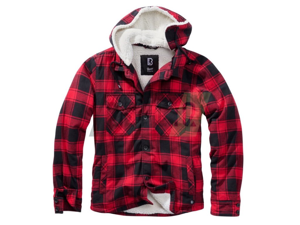 Bunda LUMBER s kožíškem a kapucí ČERVENO/ČERNÁ